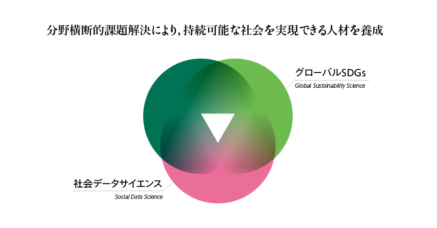 この目的の下、多岐にわたる複雑化した現代の課題を解決し、「持続可能な社会」を実現するために、「地域」と「地球規模」の両⽅の視点を持ち、高度な知識・技能を駆使して課題解決できる人材を育成します。
