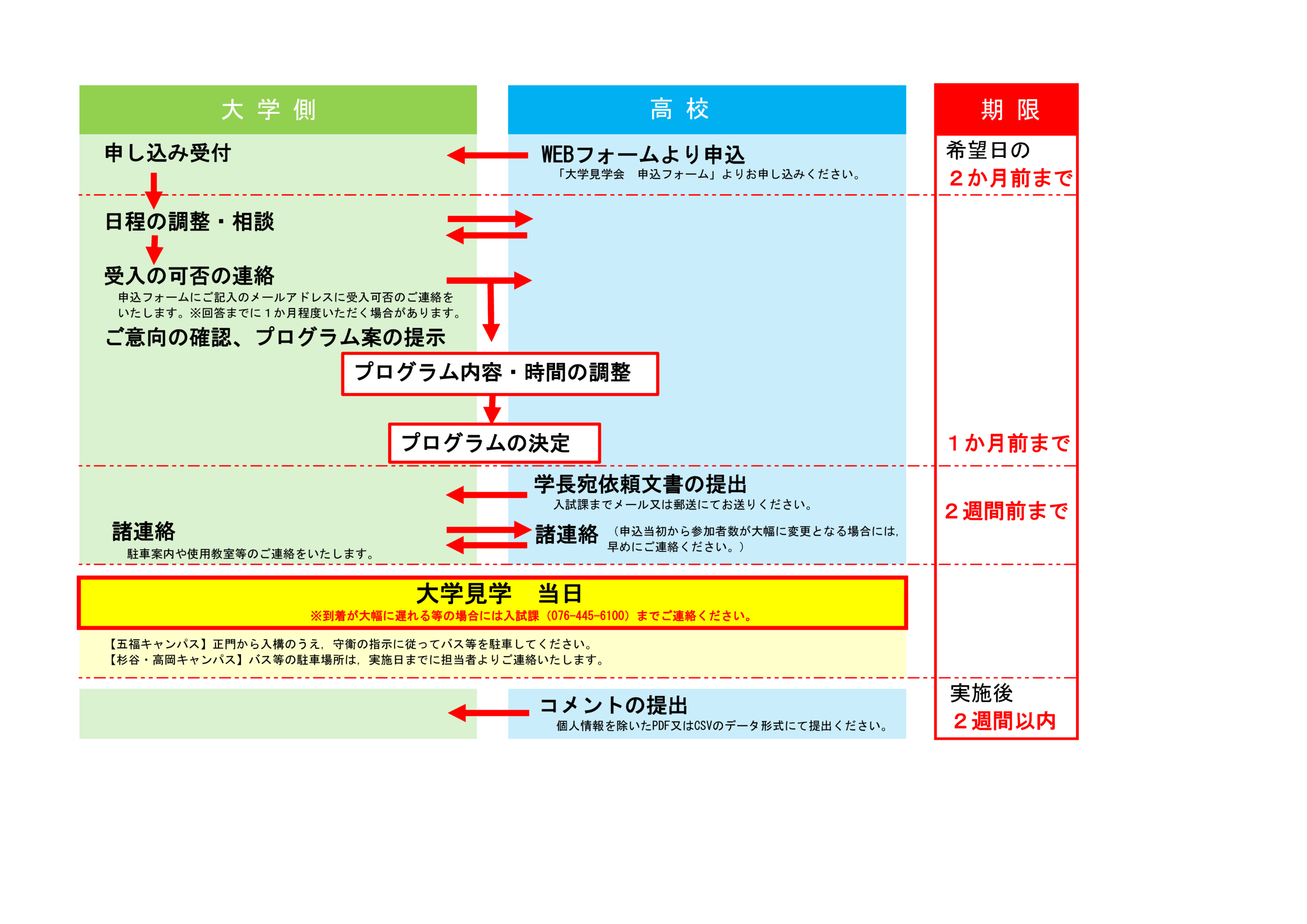 大学見学会の申し込みから実施までの流れ[PDF, 605KB]