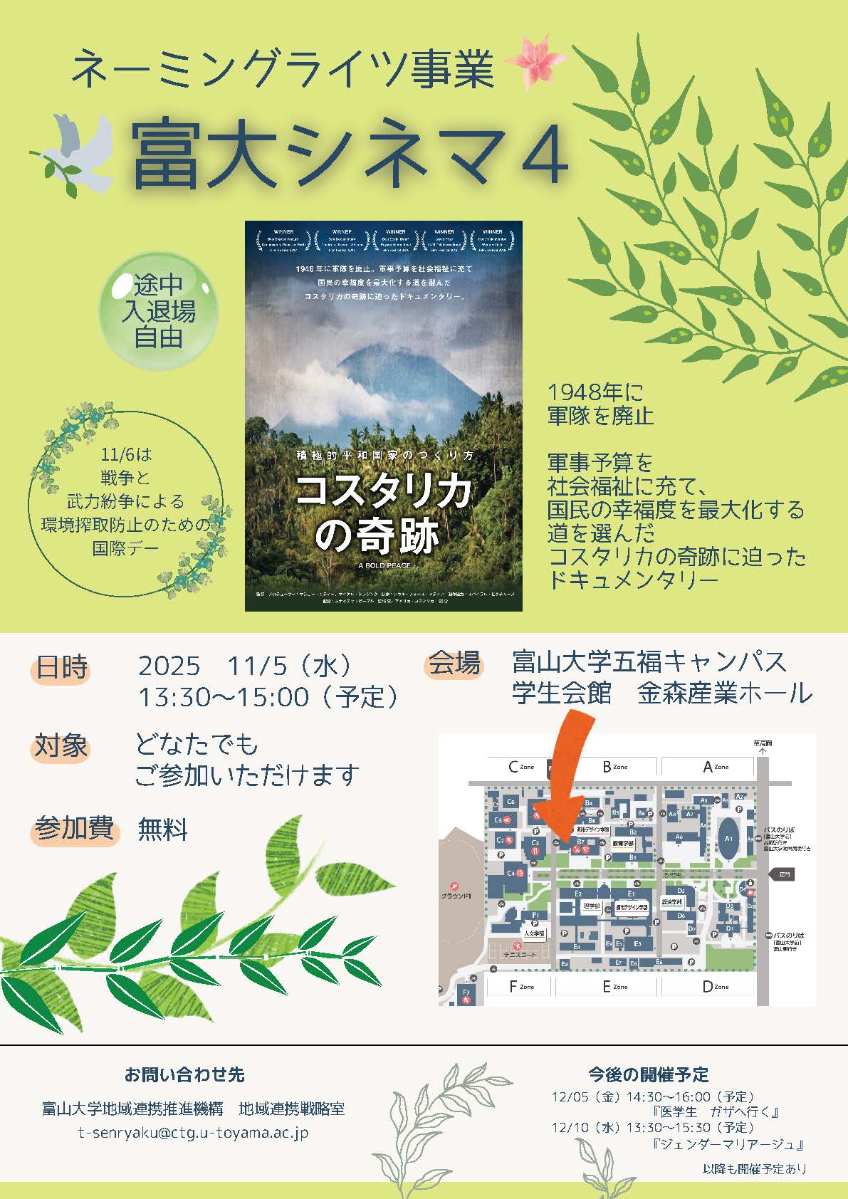 ネーミングライツ事業「国境、年齢、場を超えてつながる」の一環として、「富大シネマ」を開催します。