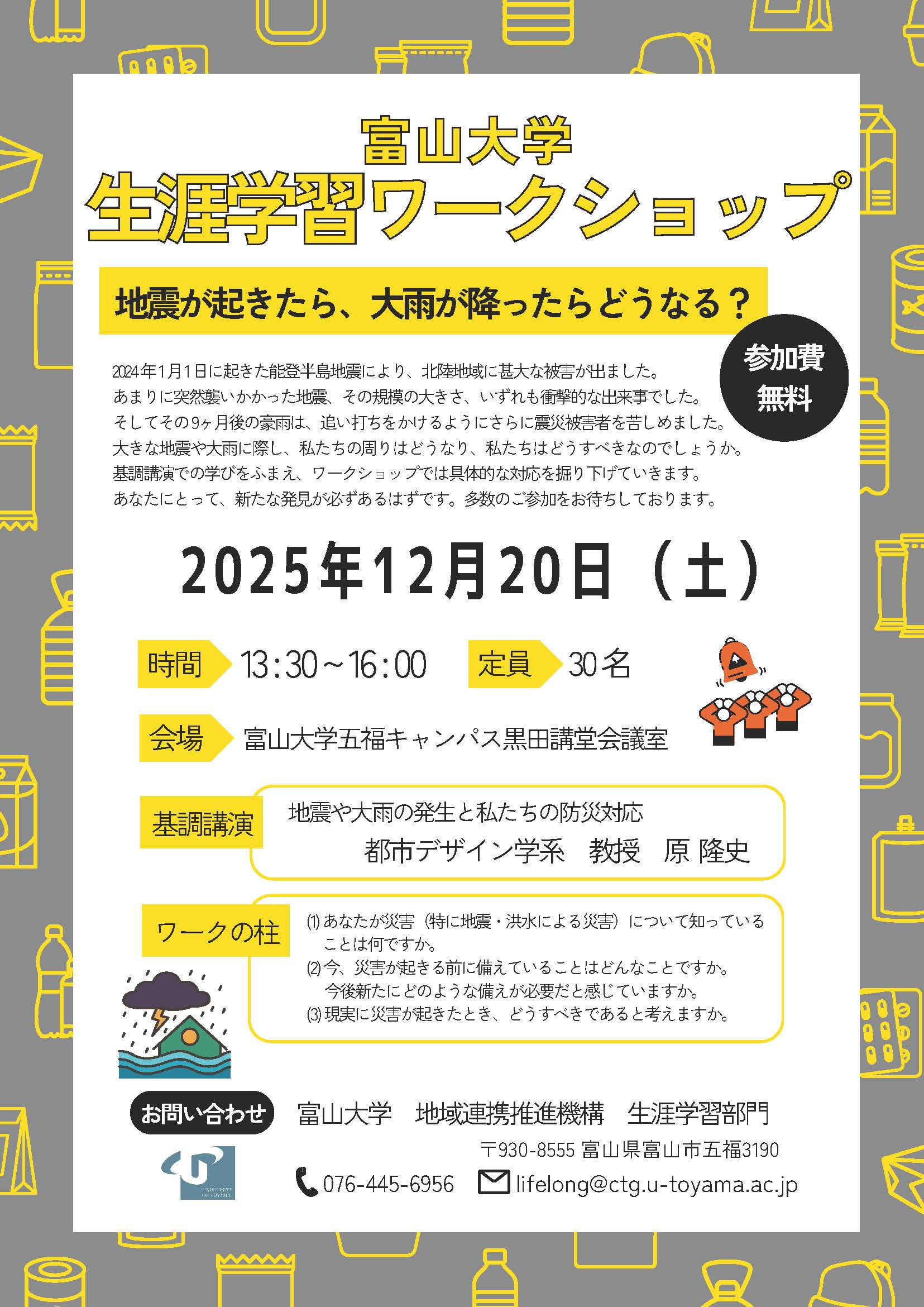 富山大学生涯学習ワークショップ2025 地震が起きたら、大雨が降ったらどうなる?