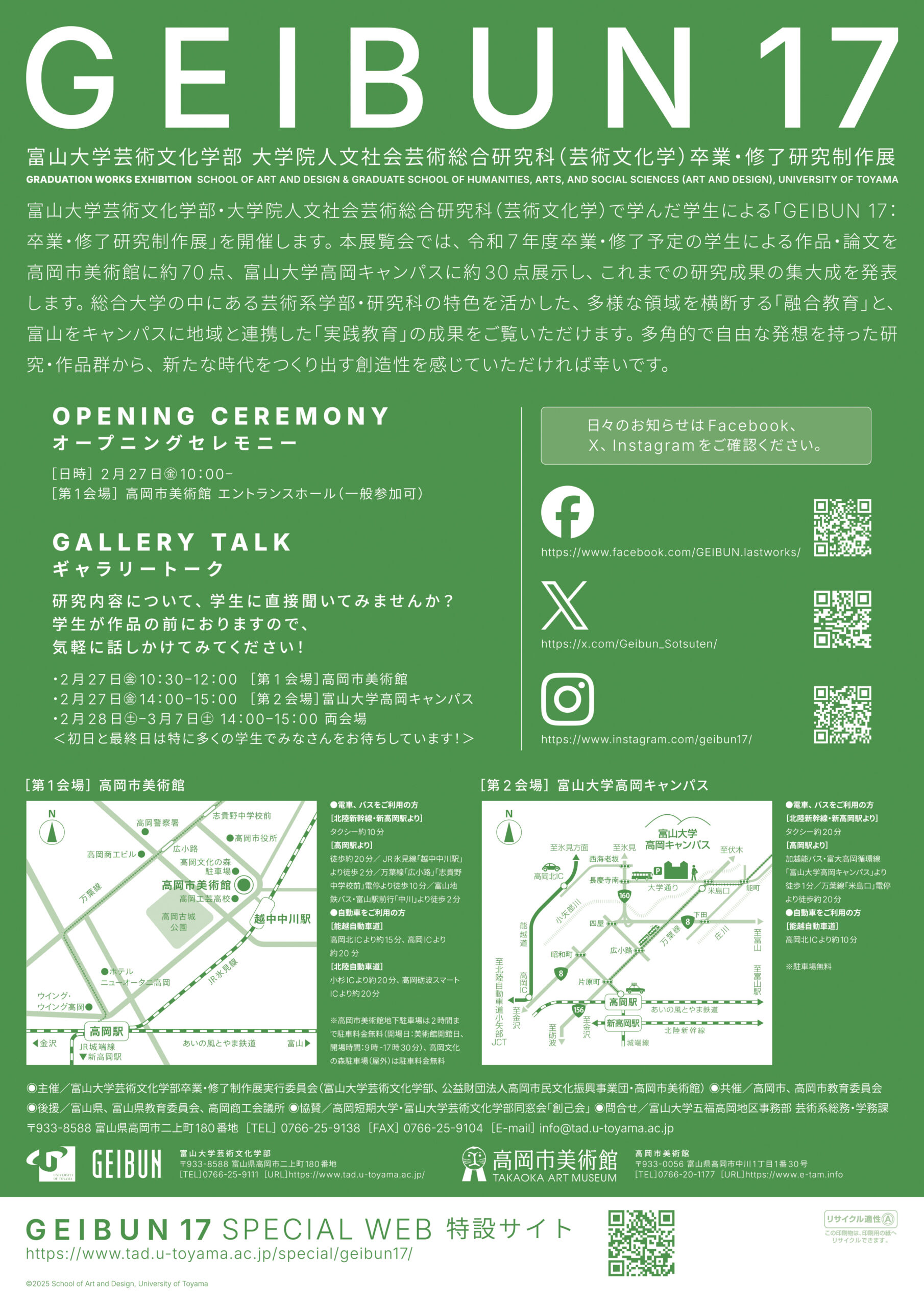 GEIBUN 17:富山大学芸術文化学部 大学院人文社会芸術総合研究科(芸術文化学)卒業・修了研究制作展