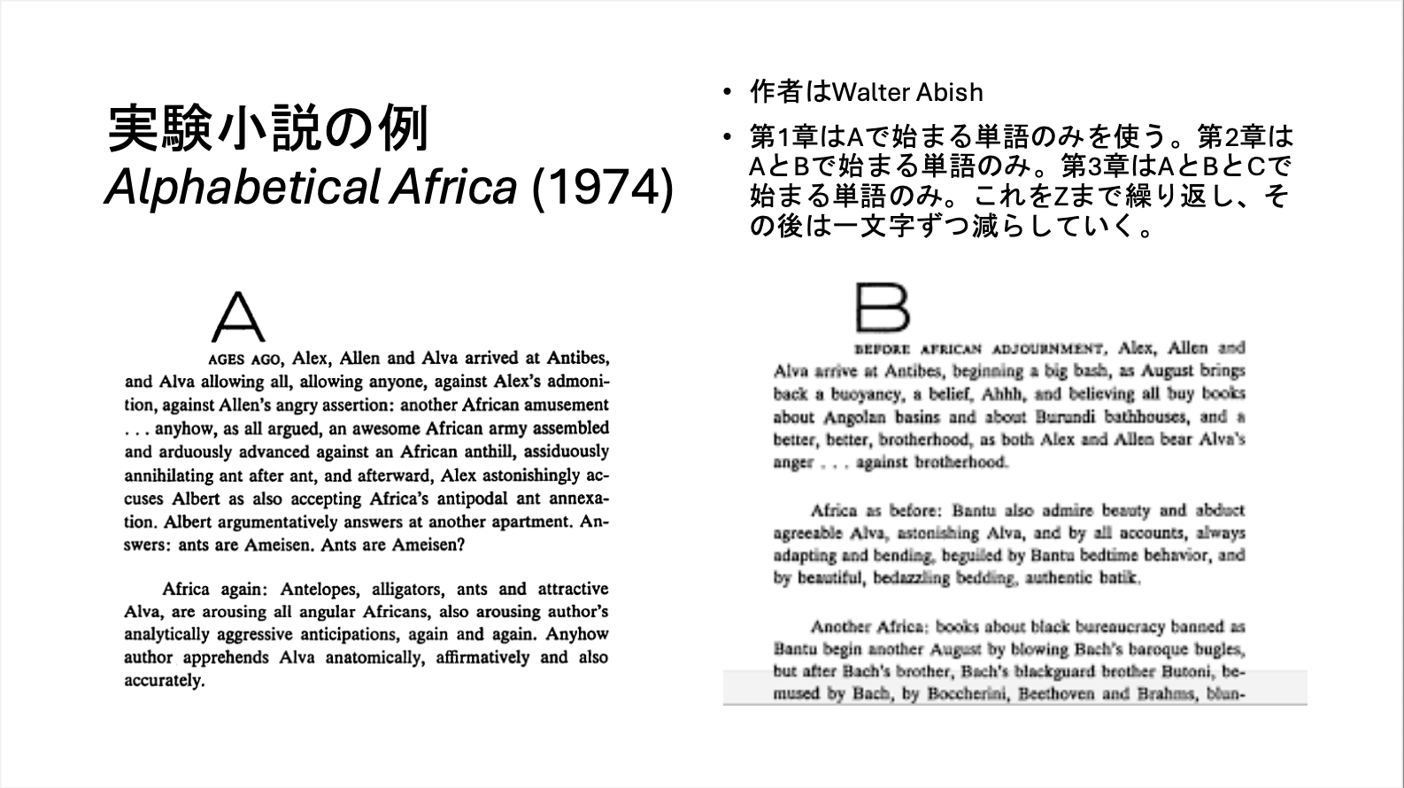 この授業では、David LodgeのThe Art of Fictionという本を読んで、小説を「読む」ために重要な50のトピックについて学びます。そして受講生は好きな作品を選び、それについて任意のトピックを用いて分析を行います。