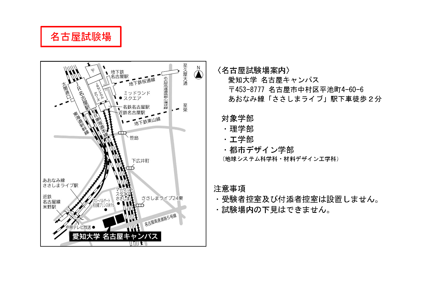 名古屋試験場の下見はできません。学外試験場案内