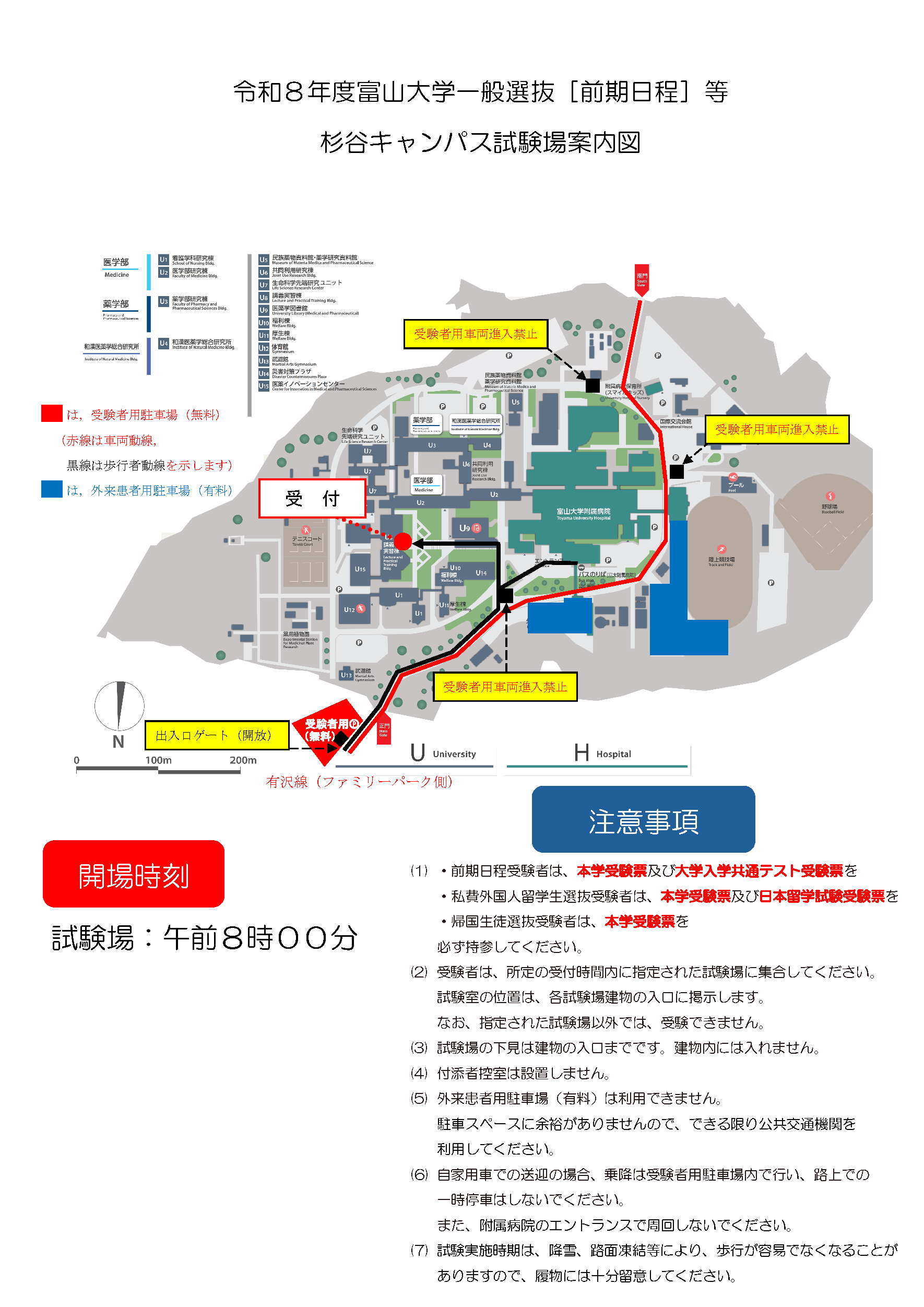 富山大学試験場の下見をされる受験者は、試験場となる建物の位置などの確認はできますが、建物内への立入りはできません。また、下見できる時間は9時~16時とします。