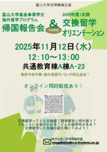 実際に交換留学に行かれた方の発表も予定しています。