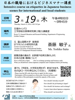 「日本の職場におけるビジネスマナー講座」の開催について/ Intensive course on etiquettes in Japanese business scenes for international and local students