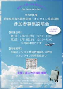 【募集開始】令和8年度夏季短期海外語学研修・オンライン英語研修参加者募集について
