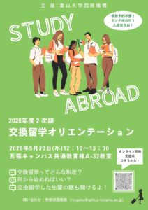また、応募を検討している学生向けに交換留学オリエンテーションを実施します。(オンライン配信あり)