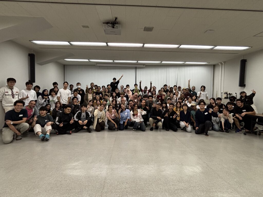 国際機構では、4月と10月の新学期に、留学生が日本人学生や他の留学生と知り合う機会を提供するため「留学生交流会」を開催しています。これは、来日直後に、同じ国の出身者と出会ったり、友達を作る機会が欲しいという、留学生の声から始めた企画で、今回で3回目となりました。10月9日の新入留学生オリエンテーションの後、黒田講堂会議室にて開催した「2025年秋 留学生交流会」には、120名ほどが参集し、新入留学生、先輩留学生、日本人学生が入り混じって、楽しい時間を過ごしました。様々な言語が飛び交い、国際交流実践の場として大いに役立ったものと思われます。