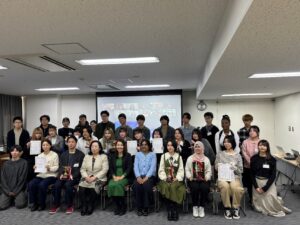 両県州の大学生等が協力してプレゼンテーションを作成し、日本人学生が発表する形式で、今回は「多文化共生社会の実現のために―日本とオレゴンの若者の視点―」をテーマに、富山県内から全11チームが参加しました。本学からは以下の2チームが参加しました。どちらのチームも本学が取り組むべき考えている課題を取り上げており、大学としての今後の取り組みの参考にさせていただきたい内容でした。