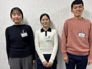 長谷川有希(人文学部)、渡辺沙耶(芸術文化学部)、佐々木太一(経済学部)