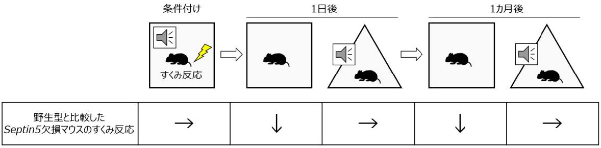 細胞骨格タンパク質セプチン5が 欠けたマウスは恐怖条件付け文脈記憶が障害される