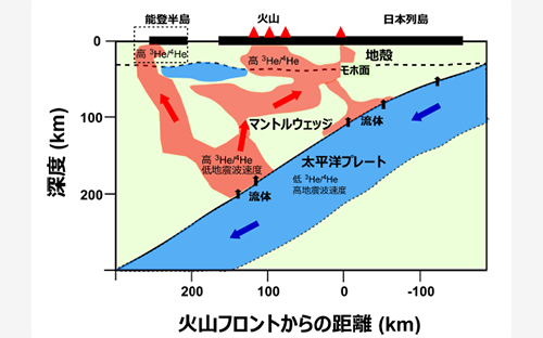 - 3He/4He比のデータと地震波トモグラフィ※2)を組み合わせることで、マントルから上昇した流体が能登半島北東部の群発地震に関与したことを明らかにしました。