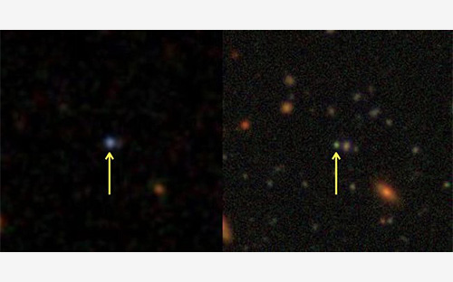 千葉工業大学天文学研究センターの諸隈 智貴 主席研究員、富山大学大学院理工学研究科の川口 俊宏 教授、国立天文台の越田 進太郎 PFS NAOJ Manager、立命館大学の鳥羽 儀樹 准教授らの研究グループは、赤方偏移1.8(約100億光年先)に存在する活動銀河核(*1)が、約20年間という短い期間に、可視光の明るさを約20分の1まで減少させた極めて珍しい現象を発見しました。スローン・デジタル・スカイ・サーベイ (SDSS) とすばる望遠鏡 Hyper Suprime-Cam (HSC) による観測データの比較をきっかけに、多波長・長期間にわたる観測データを詳細に解析した結果、超巨大ブラックホールへのガス供給が急激に弱まったことが、この大きな減光の主因であると考えられます。