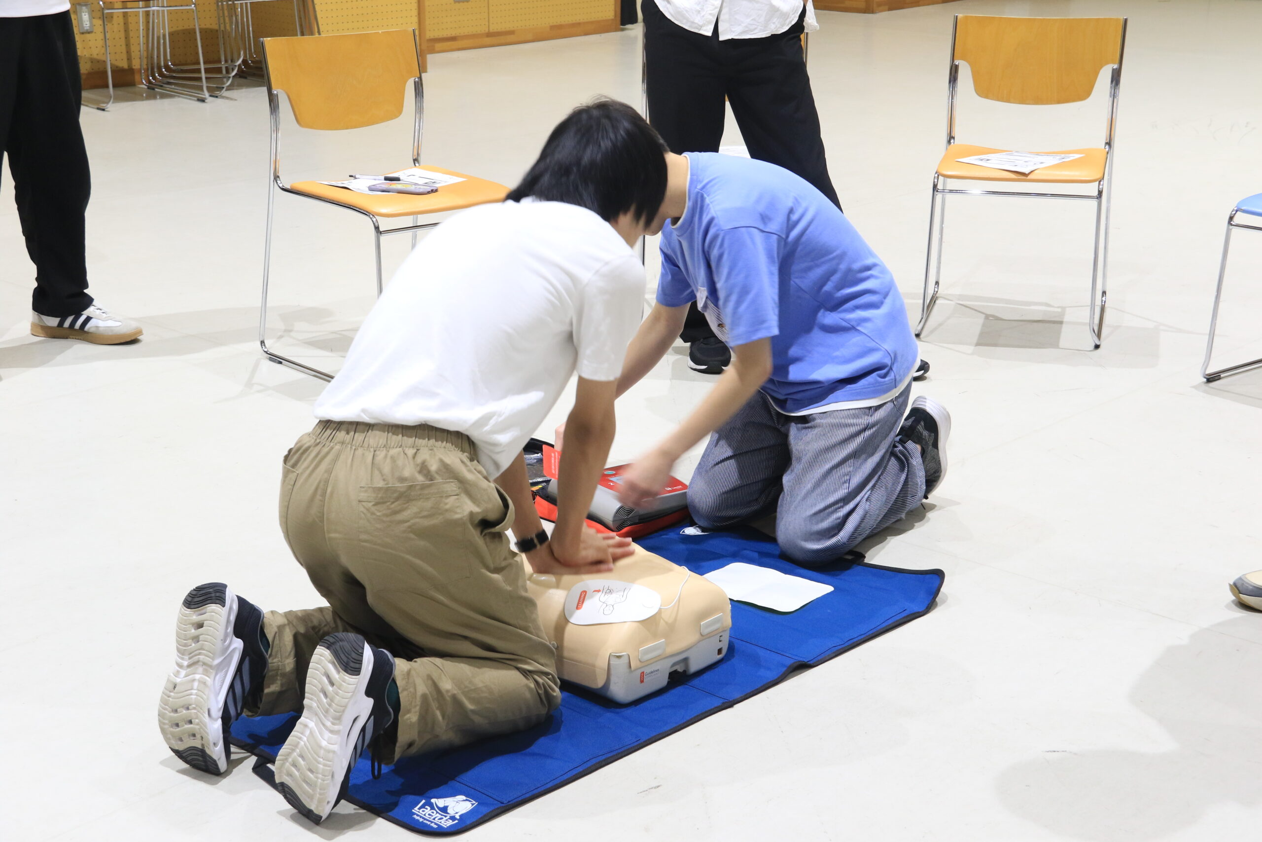 26日(金)の1日目は学内にて、災害ボランティアに関する講義および救命講習を行いました。現地実習に先立ち、災害ボランティア活動の意義や安全対策について学ぶとともに、同じ志を持つ仲間との交流を通じてチームワークを高めました。