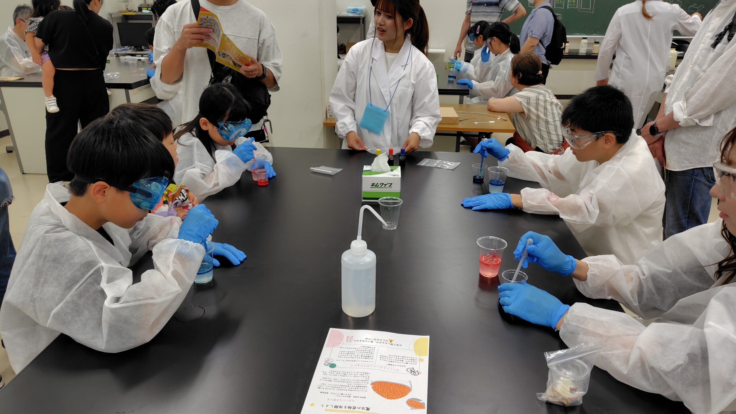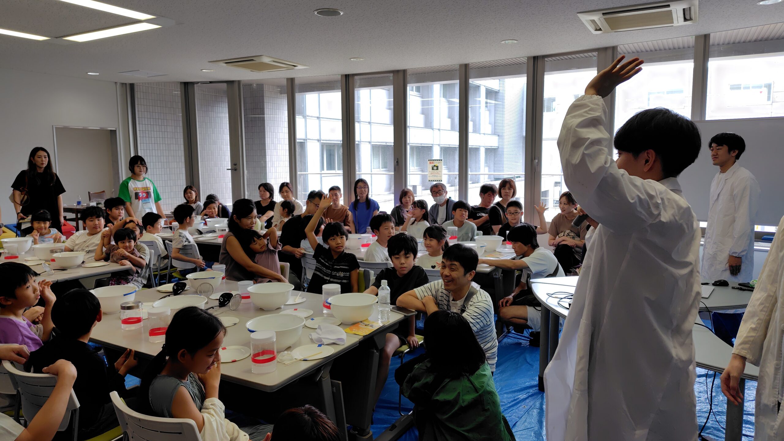 今回は『世界は不思議であふれてる~君だけのオモシロイを発掘しよう~』と題し、特別講演、サイエンスカフェ、「化学マジック!!君だけの宝石イクラ」「数学の遊び場」「地球科学を体験しよう!」等、様々な科学実験体験ブースを実施しました。