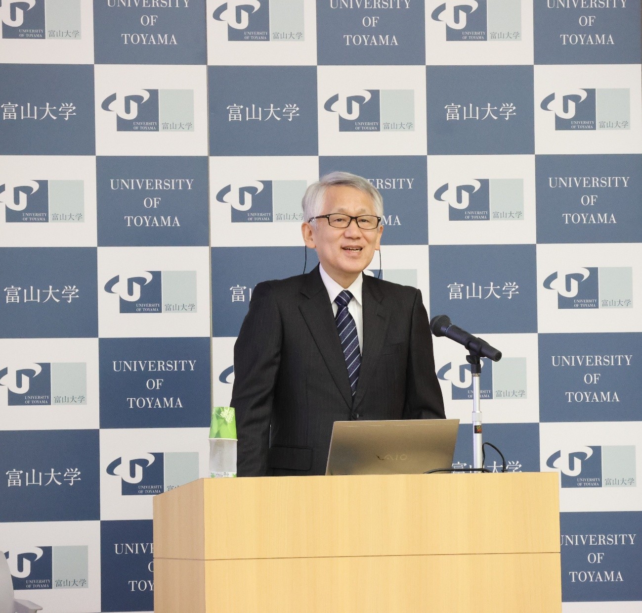 2025年11月5日(水)、杉谷キャンパス日医工オーディトリアムにおいて、田中耕一氏(ノーベル化学賞受賞(2002年)/株式会社島津製作所エグゼクティブ・リサーチフェロー/富山県出身)による特別授業を実施し、工学部や医薬系の学部生・大学院生、教職員も含め、約230人が聴講しました。 同氏は富山県の協力のもと、2018年4月に富山大学及び富山県立大学の「特任教授」に就任され、両大学において年に1回特別授業を行っており、今回が8回目となります。