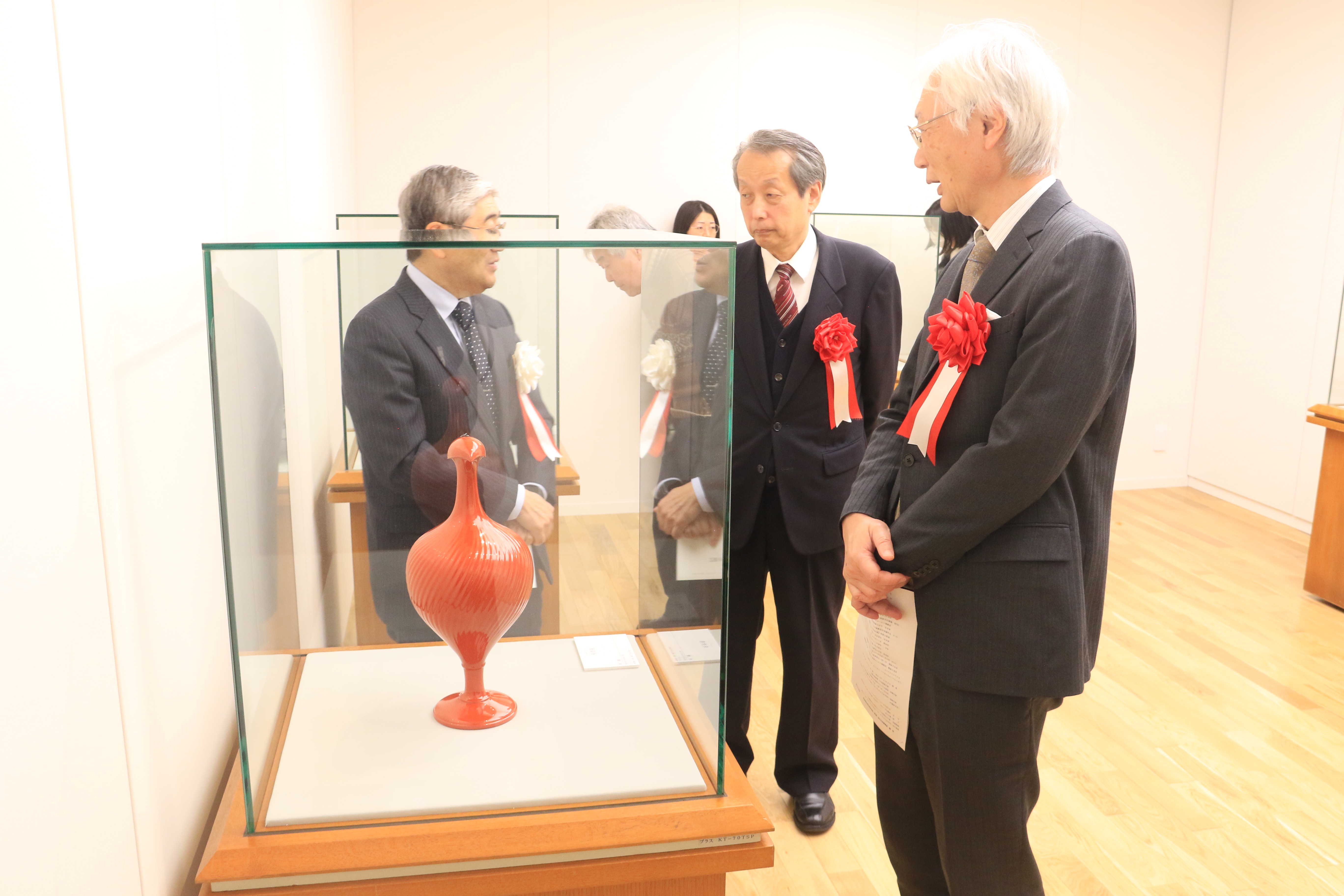 3月17日(火)、芸術文化学部文化図書館ギャラリーにおいて、林 曉(はやし さとる) 富山大学特別栄誉教授が重要無形文化財(髹漆)保持者に認定されたことを記念した展覧会開催に伴い、齋藤学長、北島理事がオープニングセレモニー・展覧会に参加されました。