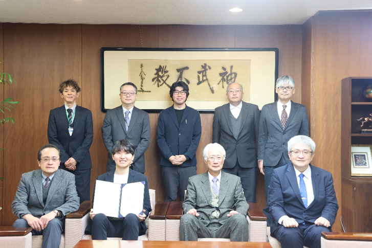富山大学発ベンチャー認定に伴う称号記授与式を令和8年3月27日(金)に,五福キャンパス事務局3F応接室で挙行しました。 大学発ベンチャーは,新規性の高い製品により,新市場の創出を目指す「イノベーションの担い手」として高く期待されるものです。