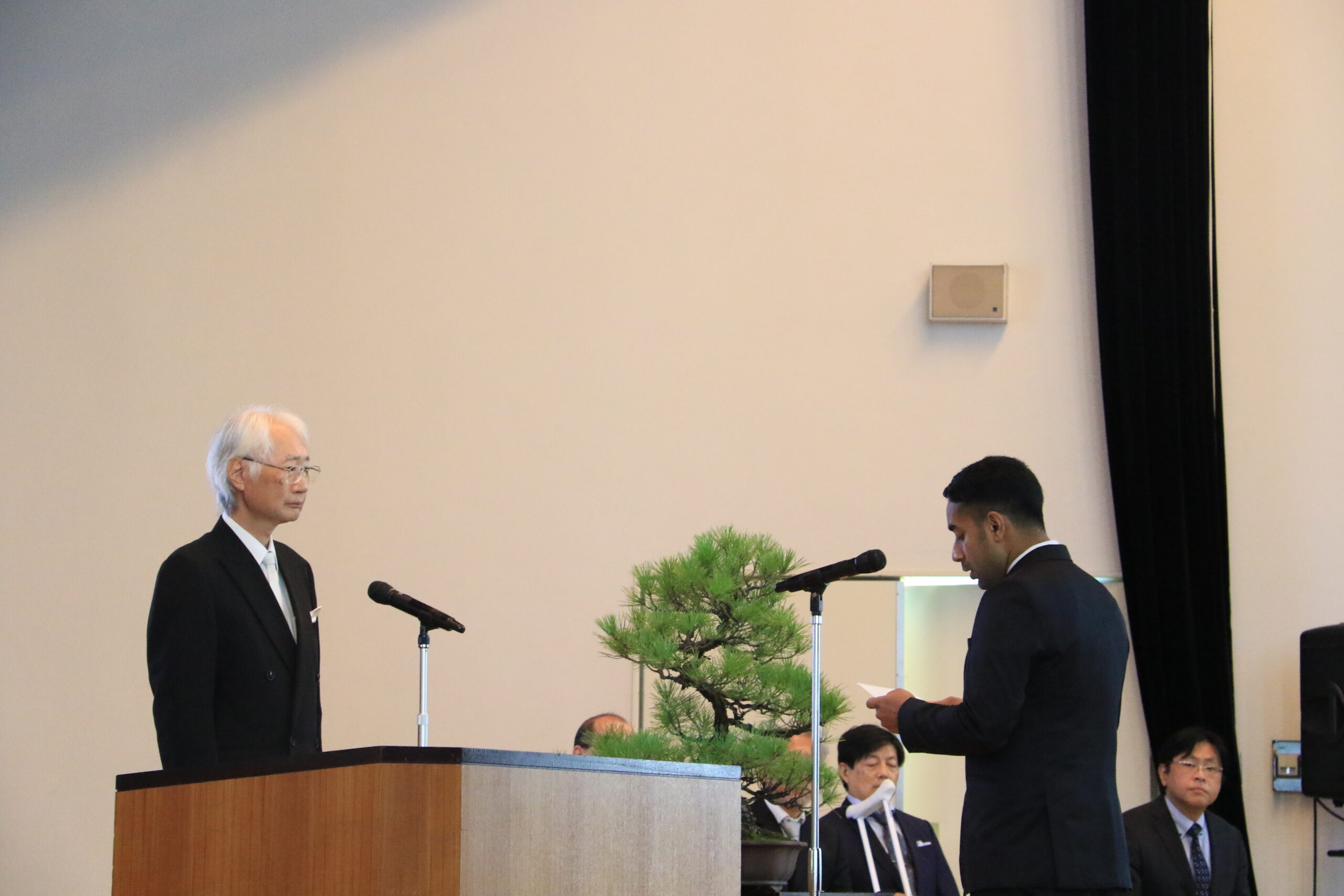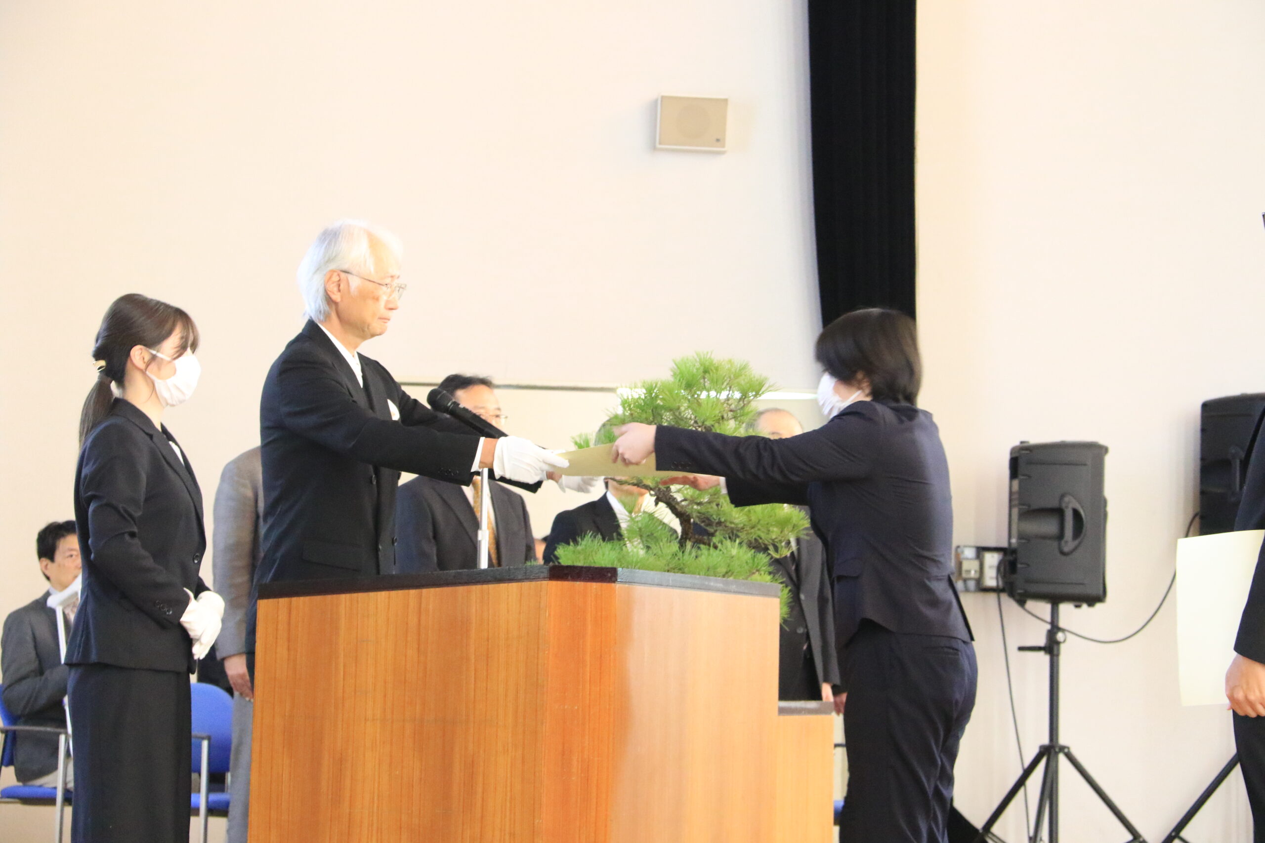 記念式典では、齋藤滋学長が挨拶し、地域と世界に開かれた大学としてさらなる発展を目指す決意を述べました。